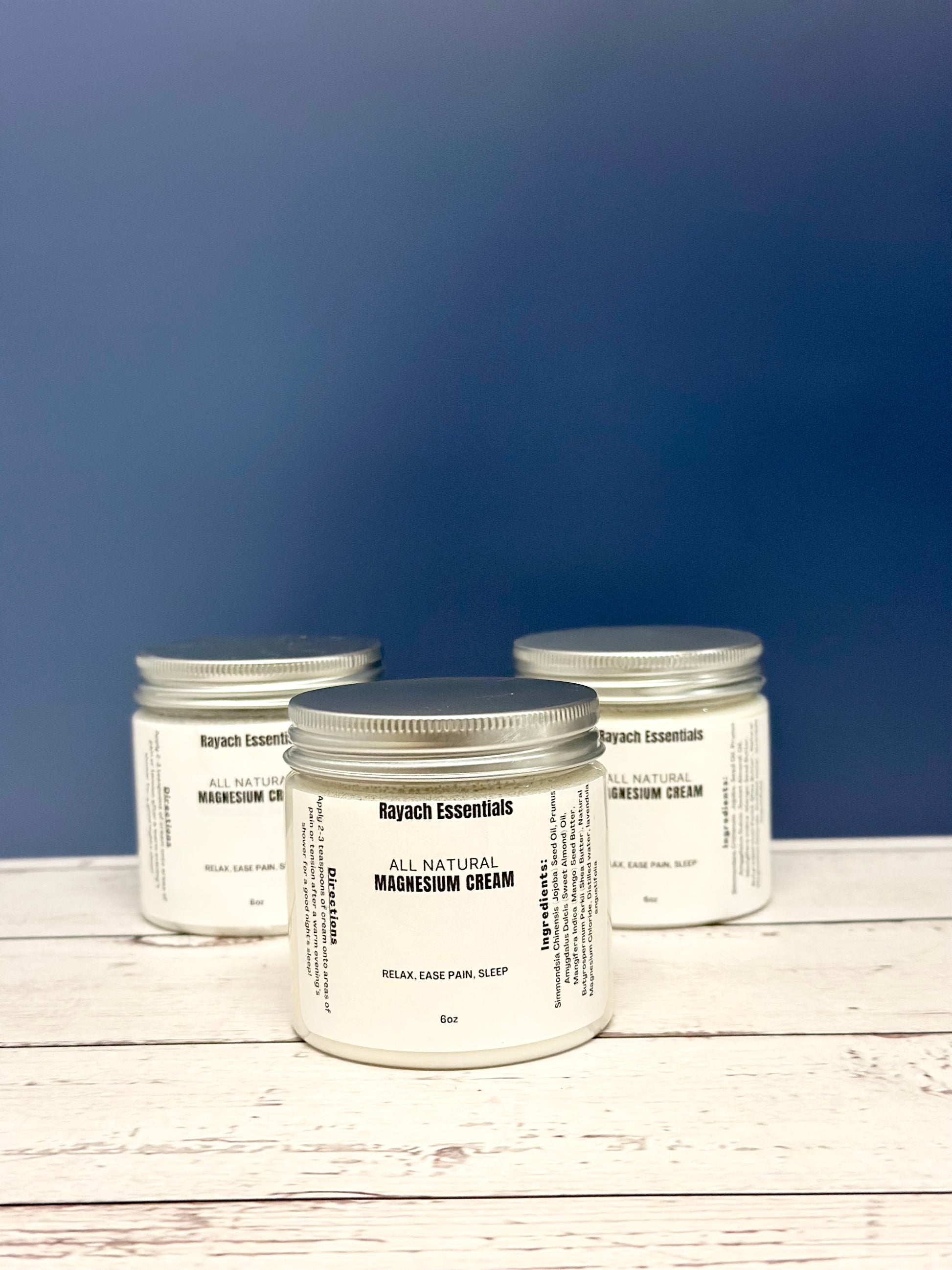 Our Magnesium cream is made with 100% natural ingredients. This is a great addition to add to your collection of cosmetic needs. There are so many added benefits of using magnesium such as:
